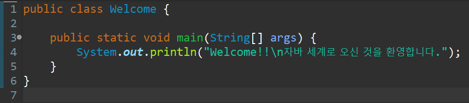 를 출력 해라. 클래스 이름은 Welcome로 한다.
