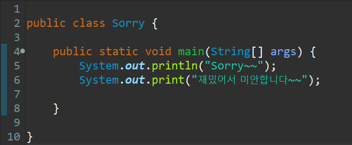 를 출력해라. 클래스 이름은 Sorry로 한다.