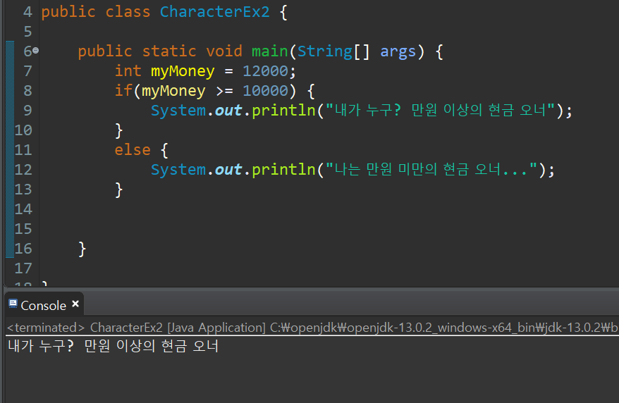 만약 만원과 오천원 사이에 또다른 조건을 만들고 싶으면 else if 문을 if문과 else문 사이에 넣어서 만들 수 있을 것이다.