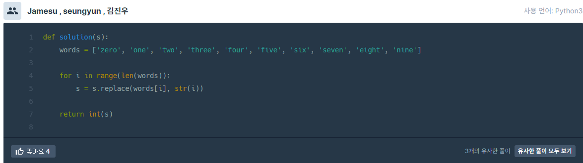 - 문자열 S 가 주어졌을때 영단어를 숫자로 리턴하는 함수를 짜시오.