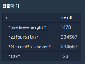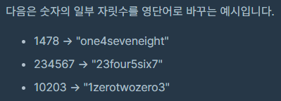 - 문자열 S 가 주어졌을때 영단어를 숫자로 리턴하는 함수를 짜시오.