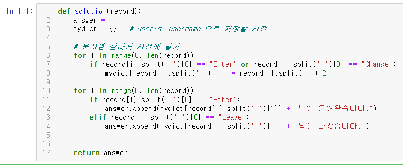 기본 개념은 그대로지만 사전으로 바꿔서 했다는점! 꼭 기억.