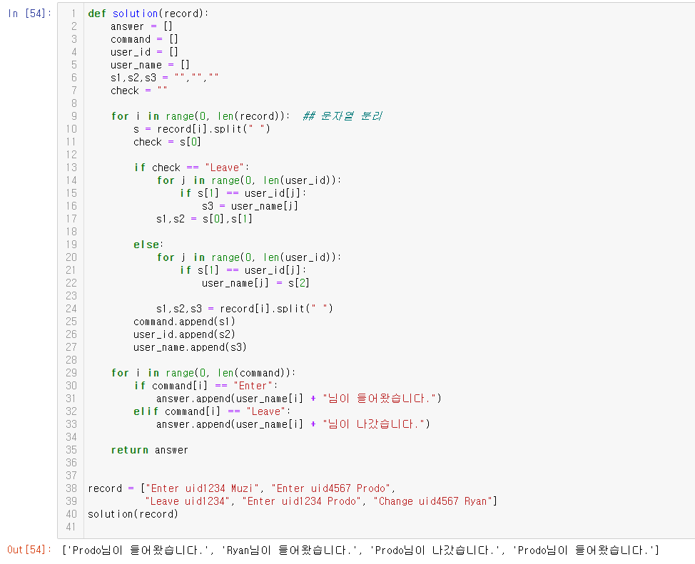 - 모든 유저는 id로 구분. "Enter [id] [name]" "Leave [id] [name]" "Change [id] [name]" 세가지 경우의 수 있다.