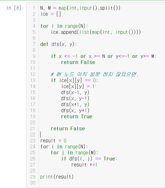 - 첫 번째 줄에 어름 틀의 세로와 가로길이 N, M 이 주어진다.
