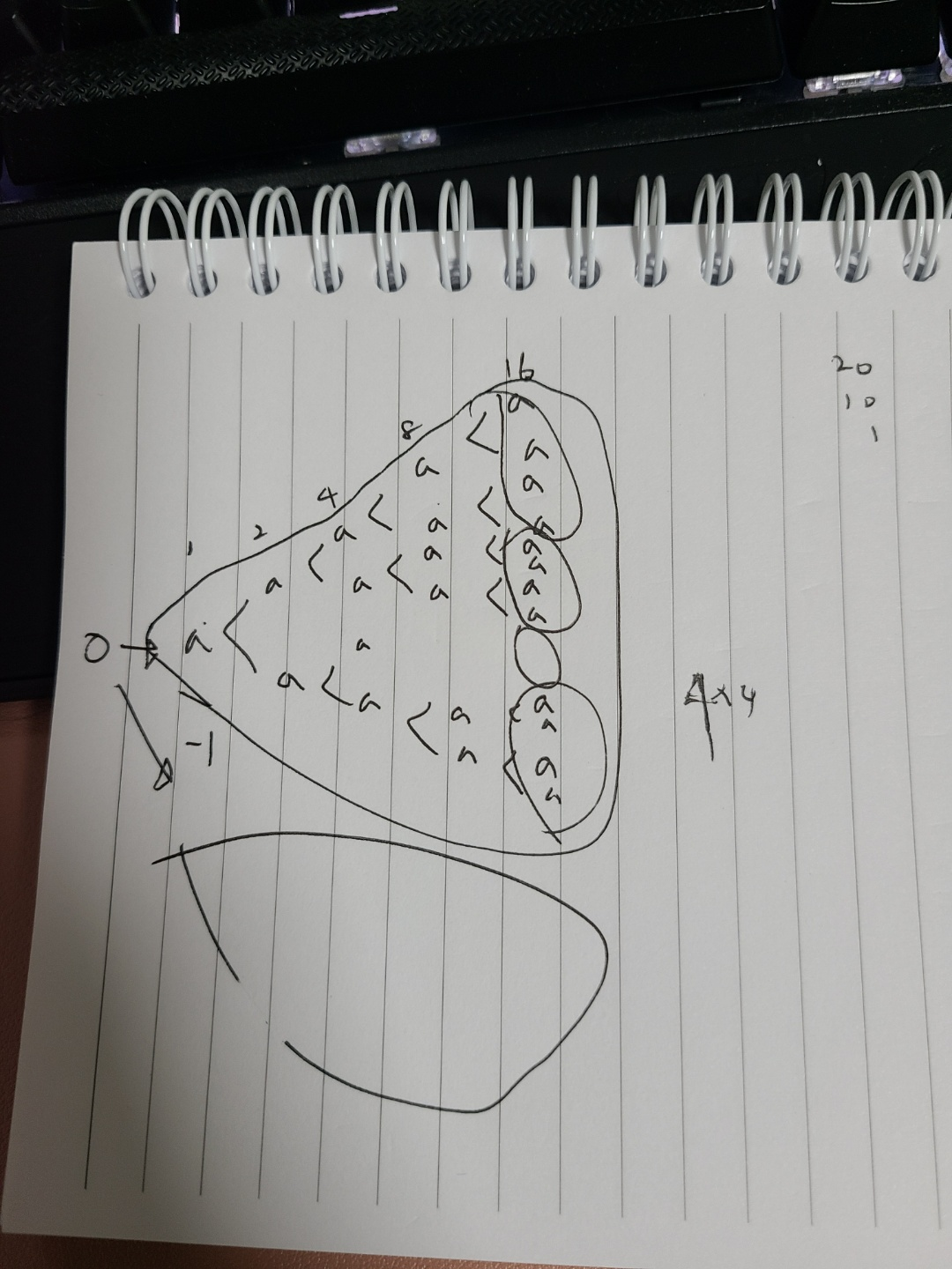 - 이미 지나온 자리를 표시하는게 중요하고. 사방이 1일때 하나 증가시키는거.